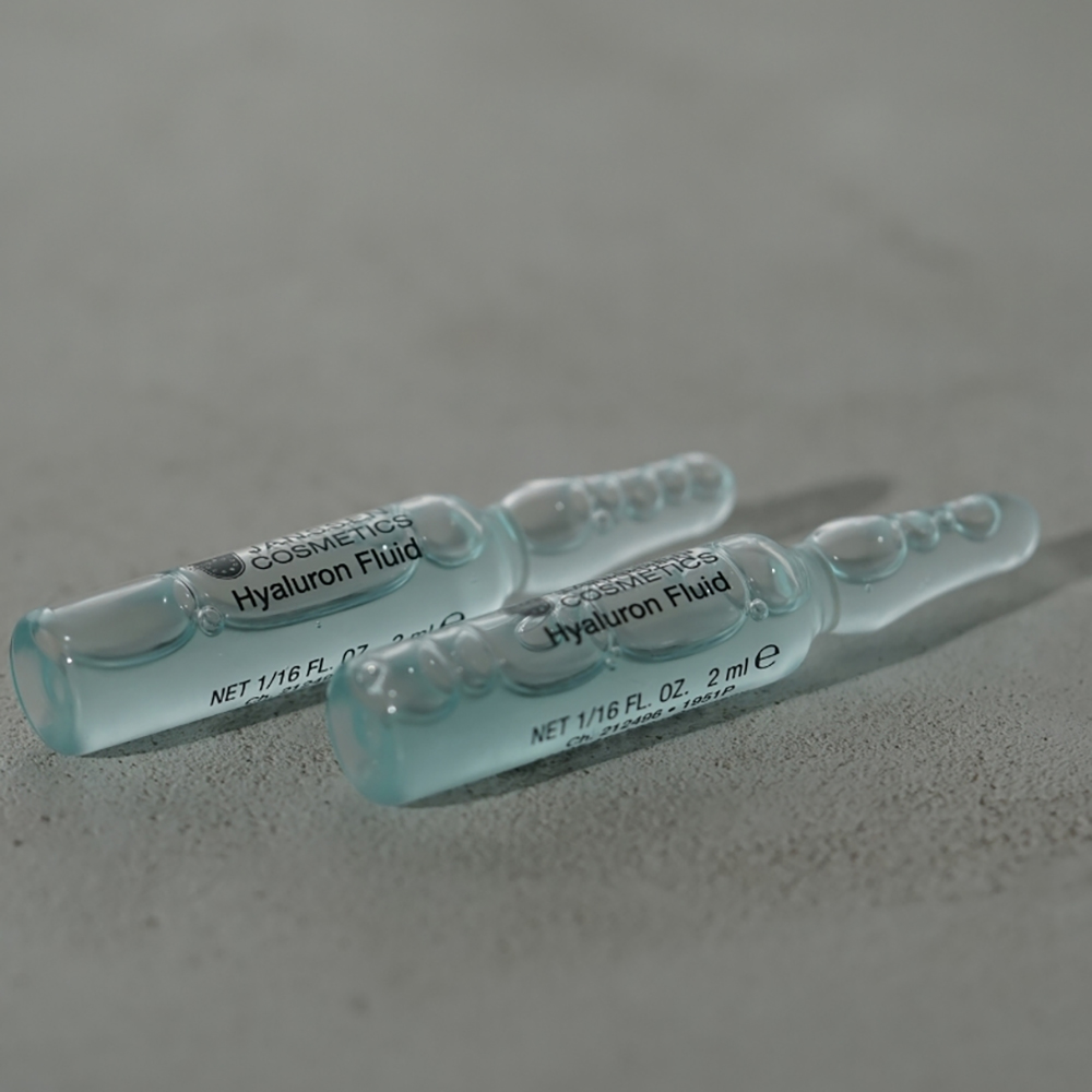 Gently distribute Hyaluron Fluid onto cleansed skin. To do so, break off the top of the ampoule, protecting your hands with a paper tissue, and pour the entire content into the palm of your hand. Then distribute evenly over the face and neck and press in gently. For external use only.