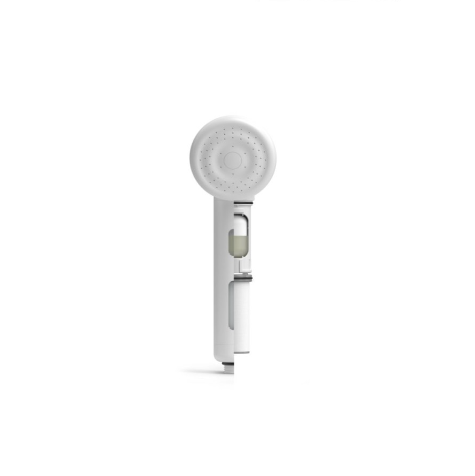 Capsule Shower Device, made from environmentally friendly materials using ABS, which also functions as an antibacterial. It is equipped with a water drainage structure in the head to reduce bacterial growth. With a unique perforation design, it produces a softer yet powerful water spray.
